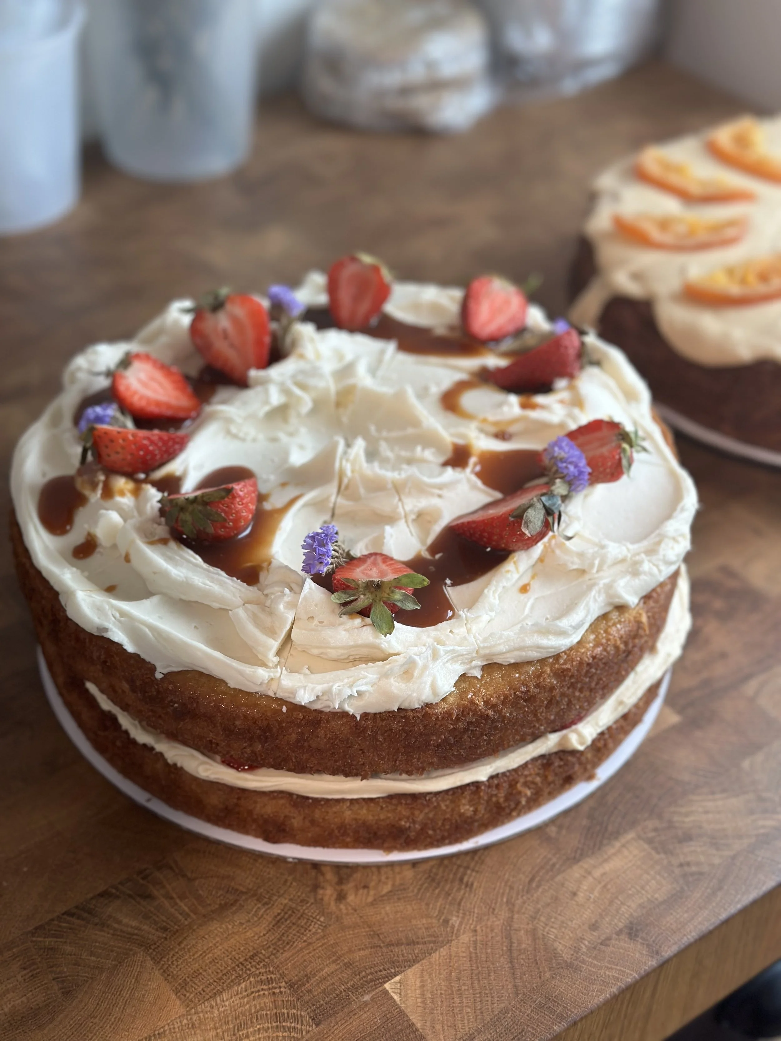 Seasonal Driven cakes! All layer cakes are available to order with a minimum of 48 hour notice. Sweet Oak Bakery does source from local and farmers market shops so ingredients can vary by season. Vegan cakes can require refrigeration. We offer delivery!